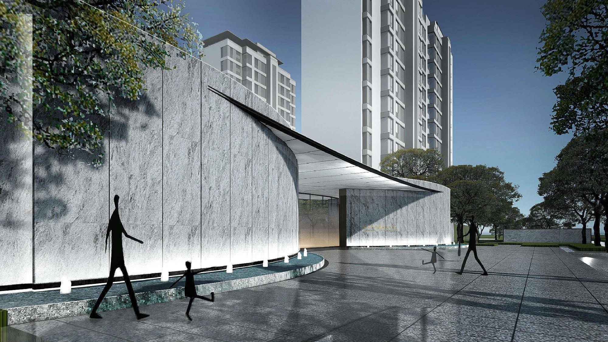 大门入口是园区景观品质的对外展示面,亦是进入园区的仪式景观,西派时代的入口就像是一本翻开的“诗书画卷”,由此踏入,开启归家的仪式感。